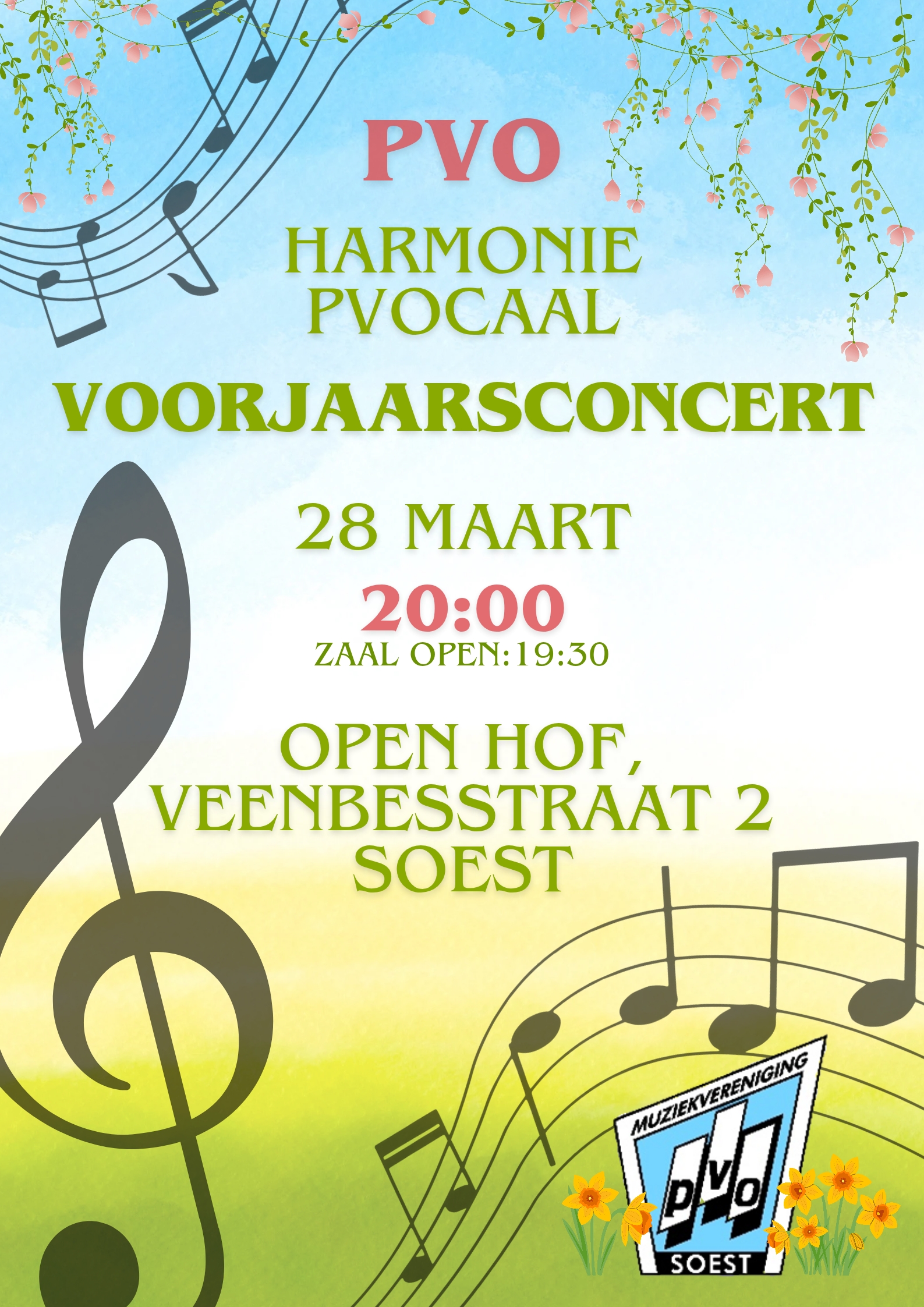 Harmonieorkest en koor PVOcaal laten het voorjaar sprankelen. Laat u meevoeren door het harmonieorkest onder leiding van Mark Beursgens en het koor PVOcaal onder leiding van Harrie Herfst. Tijdens dit feestelijke voorjaarsconcert klinken niet alleen bekende melodieën die uitnodigen tot meezingen, maar ook verrassende muziek uit alle windstreken. Beleef een avond vol muzikale warmte, gezelligheid en de frisse energie van de lente.