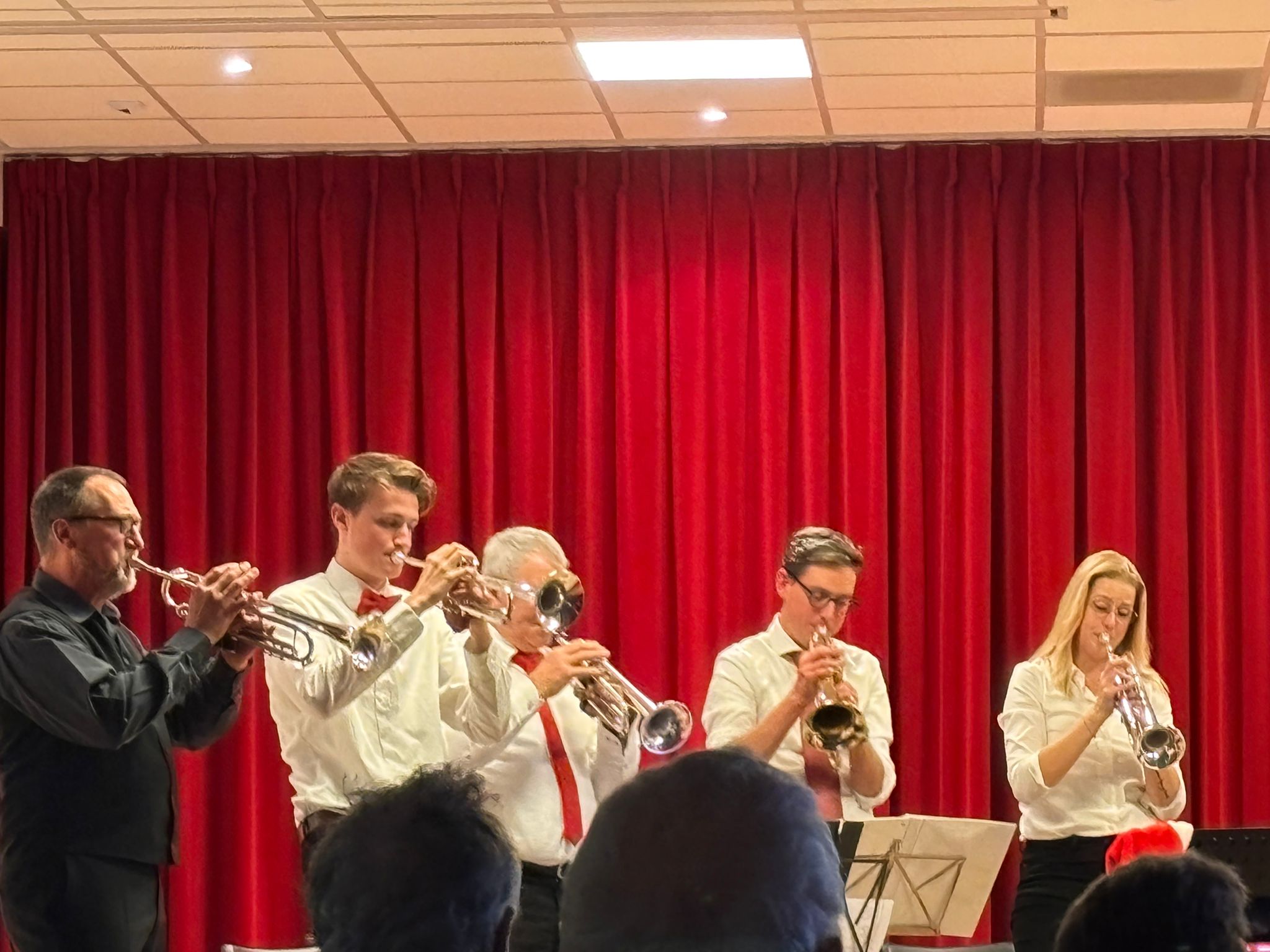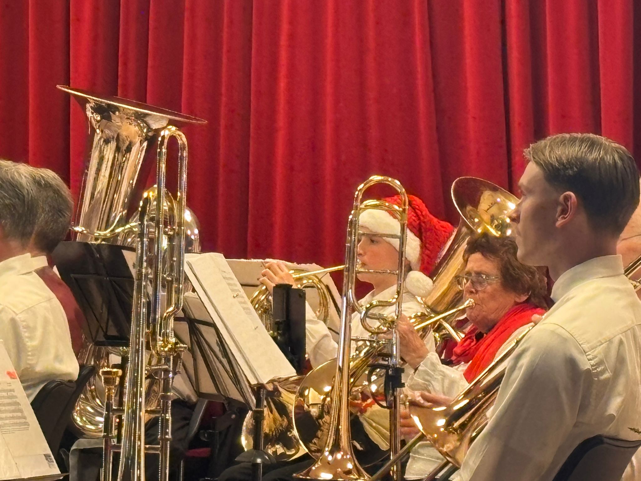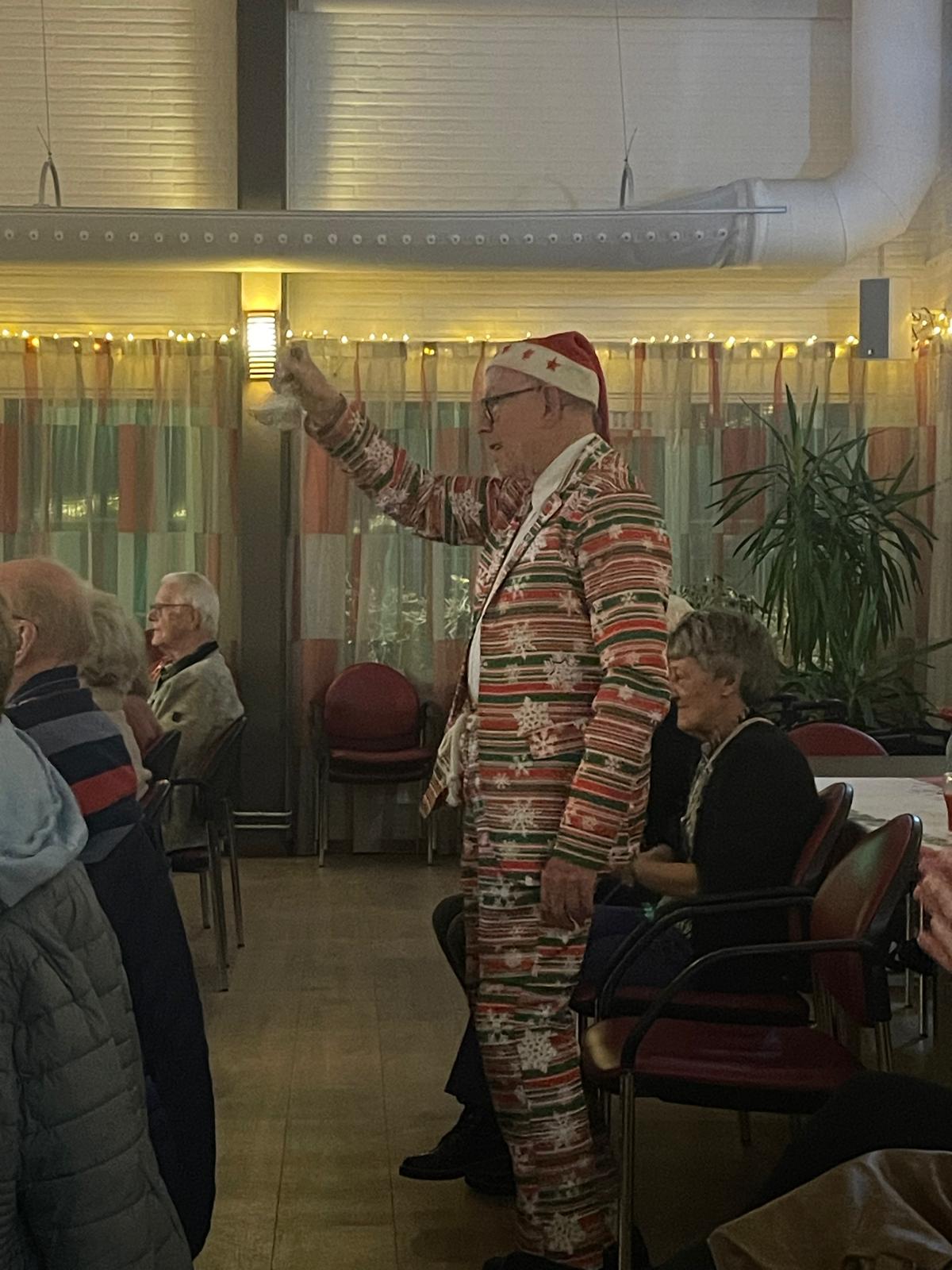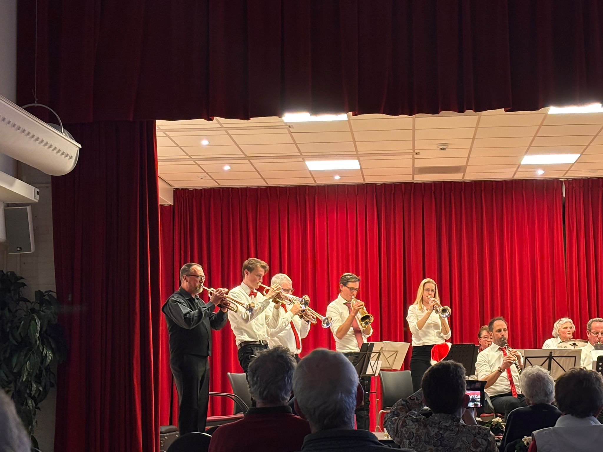Ook dit jaar was de Eemlander Blaaskapel weer uitgenodigd om in het ontmoetingscentrum De Klarinet op donderdag 18 december 2025 de avond muzikaal te omlijsten met Kerstmuziek. De zaal was mooi aangekleed en zat aardig vol rond 20:00 uur toen de Aandachtsjodler werd ingezet. Er volgden vele bekende traditionele kerstliederen, waarbij de tekst op een groot beeldscherm gepresenteerd werd, zodat iedereen kon meezingen. Na de pauze werden er wat meer populaire moderne liedjes ingezet. In de zaal had een van onze grootste fans zich in een fraai kerstkostuum gehuld en liet de kerstbelletjes klingelen. Het was een gezellige avond.