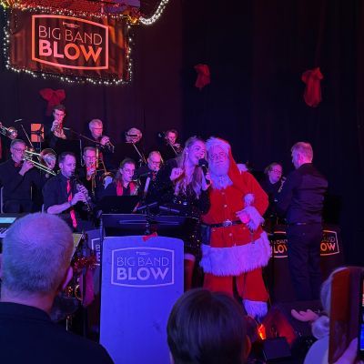 Na een lange en uitgebreide voorbereiding was het zaterdagavond 13 december eindelijk zover. Een Big Band avond vol Kerstmuziek in allerlei stijlen en arrangementen. Buiten werd het publiek verwelkomt door de kerstman en met kerstliedjes van The Victorians o.l.v. Harrie Herfst. Het PVO-gebouw was omgetoverd tot een gezellig concertzaal in kerstsferen. Om klokslag 20:00 uur werd, na een kort welkomswoord door Big Band manager Donata, afgetrapt met een door Harrie gearrangeerd PVO filmpje (a la Scrooge) gevolgd door een spetterend "Carol of The Bells - Sarajevo". Vervolgens kwamen we direct in hoger sferen met "Walking in The Air", prachtig gezongen door Gwen. Ook Harrie, Renate en Koen waren van de partij voor het zingen van een aantal liedjes. De kerstman werd zelfs in verlegenheid gebracht toen hij werd toegezongen door Renate met "Santa Baby". Vlak voor de pauze werd onze trombonist Willem nog naar voren gehaald om hem te bedanken voor zijn jarenlange inzet bij de Big Band Blow. Tijdens de pauze zongen de Victorians een paar kerstliedjes op het podium, waarna de Big Band leden al zingend met "Holidays are coming" het podium weer betraden. Het programma werd vervolgd met muziek en zang. Het publiek genoot en de muzikanten ook. Uiteraard werd er na ons laatste nummer nog om een toegift gevraagd en die kreeg het publiek met "White Christmas" en tenslotte nog "Feliz Navidad" met alle zangers en Victorians. Dank aan Thijmen voor het perfect regelen van het geluid en inrichten van de zaal, met alle helpende handjes van diverse mensen uiteraard. Het was een geweldige avond en zoals vooraf aangekondigd zeker "No Silent Night "!!!